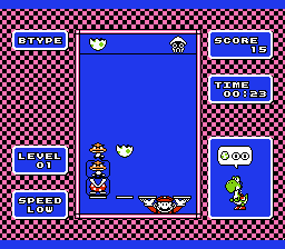 גודל: 49KB | תיאור המשחק: עוד משחק פאזלים שהוא קלון של טטריס (בדומה לד"ר מאריו). משחק זה מתבסס על אותו רעיון של התאמת אייקונים כדי להעלים אותם. למרות שהוא פחות טוב מד"ר מאריו, זה עדיין משחק לא רע וממכר. נינטנדו פשוט לא יכולים בלי לדחוף את מאריו לכל משחק שלהם, והם עשו זאת גם כאן. טיפ: נסו לחבר חצי תחתון לחצי עליון של ביצה לקבלת יושי! | |